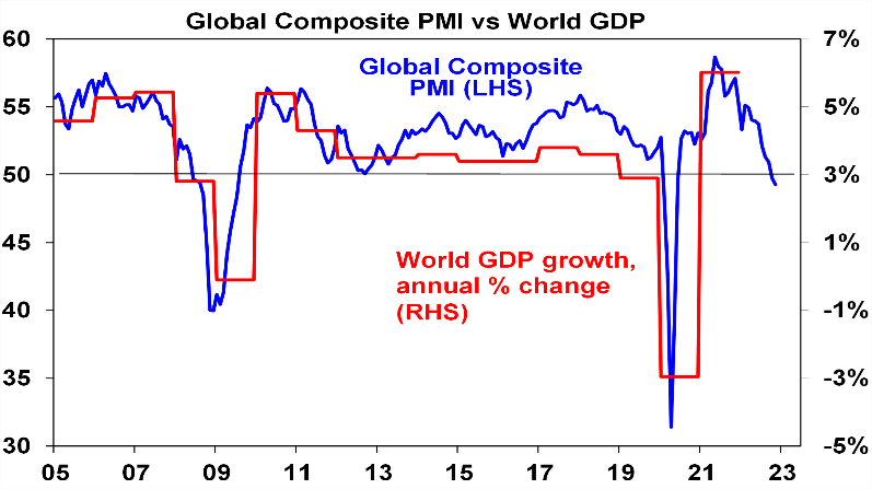 Second, central banks are likely nearing the peak in rates. The Fed is already moving to slow hikes, but conditions are likely to be soft enough to allow it to pause from around March ahead of rate cuts later in 2023. Sure, its signalling more but just as its signals were too dovish a year ago its signals now are likely too hawkish! In Australia, we see the RBA as being at or close to the top (3.1% is our base case for the peak with 3.35% our risk case) as by February/March conditions are likely to be weak enough to allow a pause, ahead of rate cuts in late 2023/early 2024.